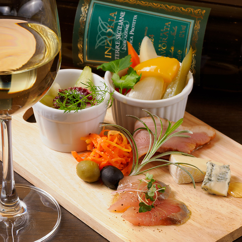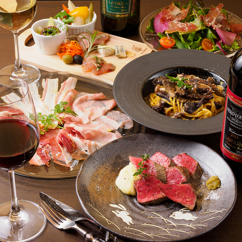 各国の生ハムや淡路島の生パスタなど、厳選した素材を使ったアラカルトをご用意。肉・魚・前菜・パスタ・デザートまで幅広く揃え、料理ごとに異なる香りや食感を楽しめます。素材の魅力を丁寧に引き出した、上質な一皿を心ゆくまでどうぞ。