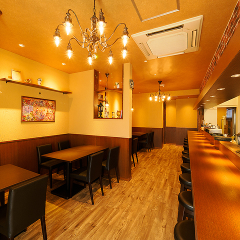 1名利用を中心に設計されたカウンター席は、落ち着いた雰囲気で自分だけの時間を過ごせる特別な空間。夜はライトを少し落とし、ゆったりとした大人のバルのようなムードに。目の前にはキッチンが広がり、料理の香りや音が心地よく寄り添います。仕事帰りの一杯や、距離が近いデートにも最適です。