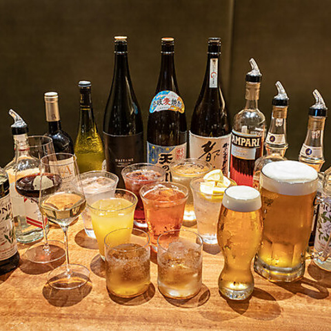 生ビール含むアルコール40種類、ノンアル15種類よりお選び頂ける単品飲み放題プランも90分2750円(税込)でご利用いただけます。是非お好きなお料理と一緒にお楽しみください。
