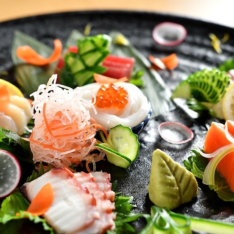 市場で目利きして仕入れる旬の鮮魚。脂の乗った魚介の旨みをおたのしみ頂ける刺身の盛り合わせは絶品です!