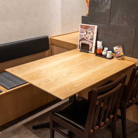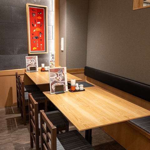 店内は和の情緒あふれる落ち着いた印象で、世代を問わずリラックスできます。席を結合することで最大8名様まで一つのテーブルにご案内可能です◎