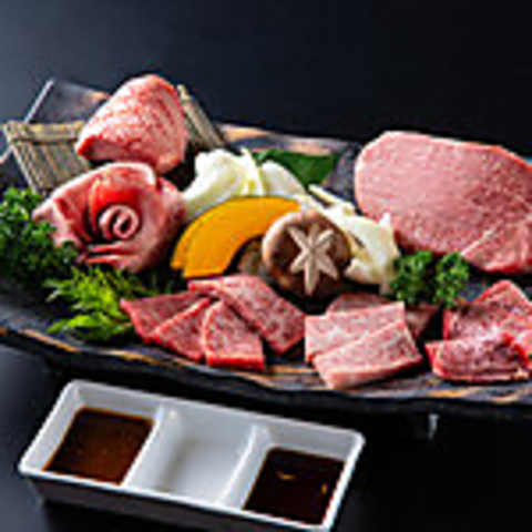 上質なお肉の盛合せ ■シャトーブリアン(150g) ■極上トロタンステーキ ■上タン塩 ■特上カルビ ■上ロース ■特選ハラミ ■焼き野菜