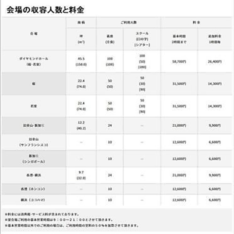 | 貸切 | 24名様×1 | 「香港・横浜」 ロの字スタイル |