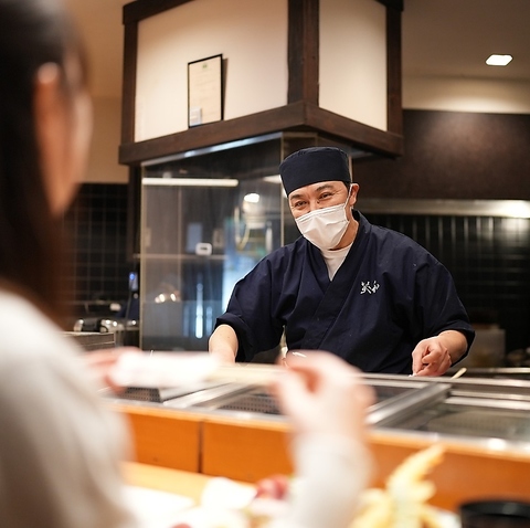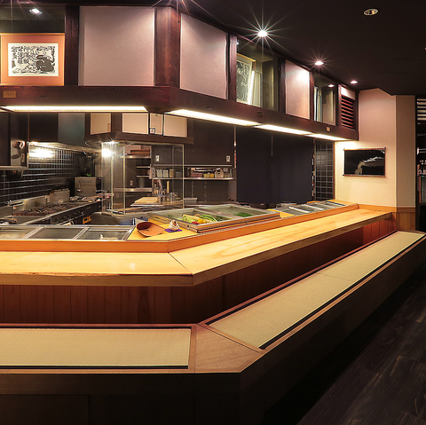 カウンターにお座りいただくと、目の前で職人の料理をしている様子をご覧いただけます。