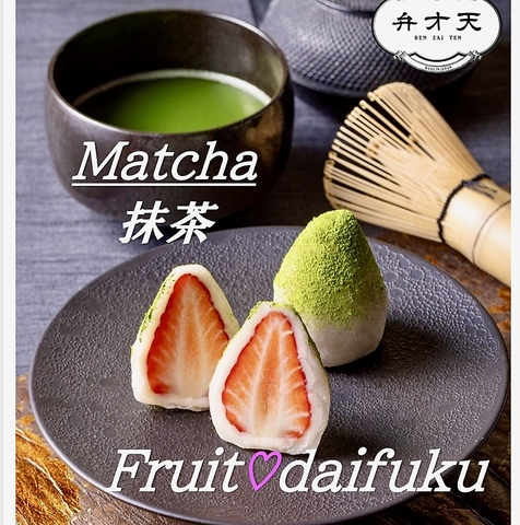 お茶の名産「狭山茶」希少な抹茶が味わえる。フルーツ大福をセットで提供!至福の贅沢をお愉しみ下さい