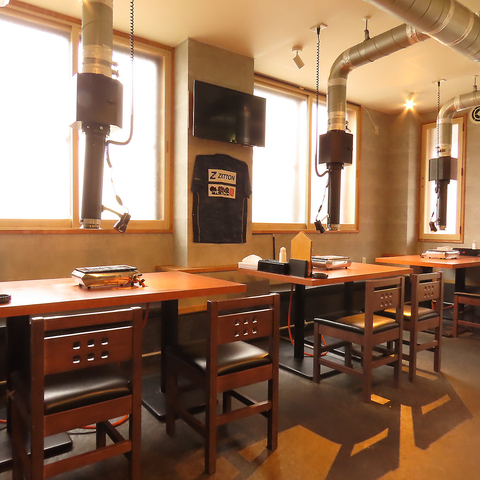 明るい光が差し込む窓際のテーブル席は、会社帰りのお食事や休日に友人とわいわい楽しむのにぴったりです♪清潔感あふれるモダンな空間で、上質な焼肉をゆっくりと堪能いただけます。駐車場も完備しておりますので、お車でのご来店も安心です◎