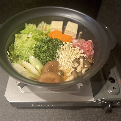 色彩豊かな白菜、水菜、ネギ、人参。そこに豚肉や豆腐、複数のきのこが加わり、具材の宝箱のような一品。手間暇かけた出汁が全ての旨味をまとめ上げ、一口ごとに深い満足感をもたらします。寒い季節にこそ味わいたい、心身を癒す贅沢な鍋料理をご堪能ください。