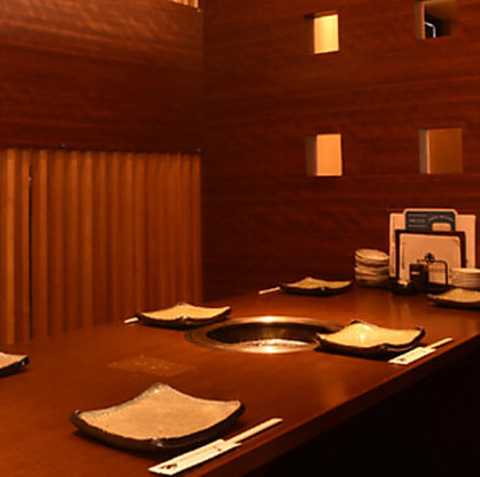 木の温かい風合いを最大限に生かし洗練された和モダンな完全個室は、4名様程度まで収容可能で、足を伸ばしてくつろげる掘りごたつ式となっているため、周囲を気にすることなく、食事や会話を心ゆくまで寛ぎながらお楽しみいただけます。