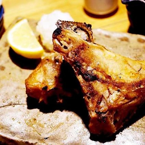 新鮮で脂がたっぷり乗った「かんぱちカマの塩焼き」は、まさに魚好きにはたまらない逸品です。シンプルに塩焼きにすることで、カマのジューシーで柔らかい食感と濃厚な旨味が最大限に引き出されています。レモンと大根おろしを添えて、さっぱりとお召し上がりください。日本酒との相性も抜群です。