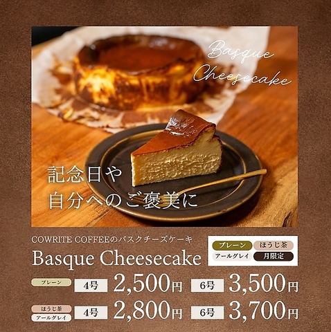 ひと口で広がる濃厚なコクと、なめらかな口どけ。丁寧に焼き上げた、自慢のバスクチーズケーキです♪