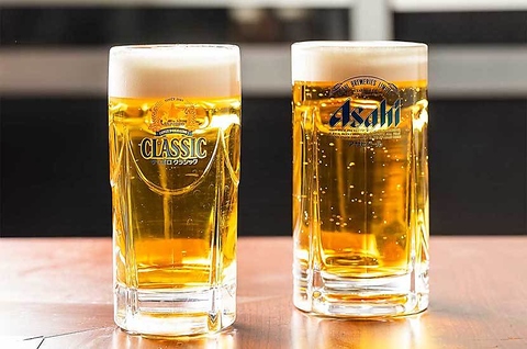 キンキンに冷えた2種類のビールをはじめワインやカクテルなど豊富に取り揃えております