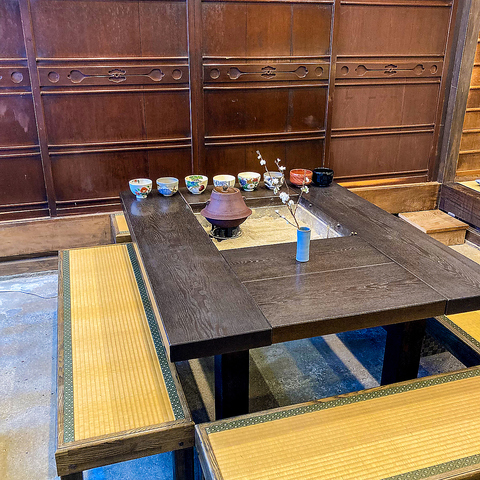 | テーブル | 2名様×4 | お抹茶体験用の囲炉裏です。飲食でもご利用可能です。団体様のご利用も可能ですので、スタッフまでお伝えください。 |