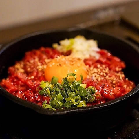 焼肉しょうすけ名物の「焼きユッケ」は、事前予約必須メニューです。スキレットに乗せて焼きながら食べるユッケはリピート間違いなし…!1人前が1.5人分ございますので、2名様でシェアして食べるのにもちょうどいいボリュームです◎予約時に必要個数を必ずご回答ください!