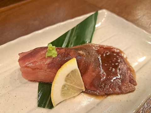 軽く炙られた上質な牛肉は、口に入れた瞬間にとろける極上の旨さ。特製のタレとワサビ、レモンの爽やかな風味がアクセントとなり、ホルモンとはまた違う、肉本来の繊細な味わいを堪能できます。