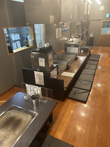 鉄板が埋め込まれたテーブルやカウンター席には、排煙設備が設置され、煙を気にせずホルモン焼きを楽しめます。広々とした空間は清潔感があり、活気あふれる雰囲気の中で仲間や家族と賑やかに過ごすのに最適です。