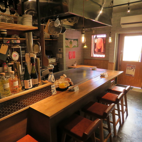 特別な夜を演出するモダンな店内◎カウンター席では、目の前でシェフが繰り出す華麗な鉄板焼きの調理風景をお楽しみいただけます。熱々の料理を堪能できるライブ感溢れる空間は、デートや記念日にもぴったりです。お一人様でも気軽に立ち寄って、和牛ステーキや帆立バターなどの鉄板料理と冷たいお酒をご堪能ください。