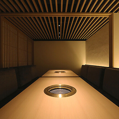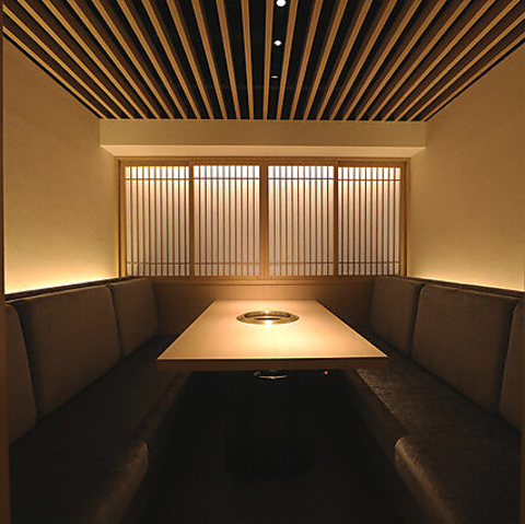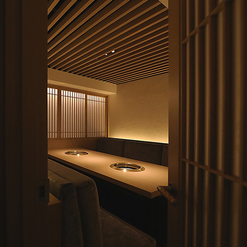 「上質な時間を誰にも邪魔されずに楽しんでいただきたい」そんな想いから、ゆとりある完全個室を全7部屋ご用意しました。2名様から最大8名様まで対応可能で、大切な方との特別なひとときや、ご接待・記念日にも最適です。落ち着いた空間で、心ゆくまで焼肉をおたのしみください。
