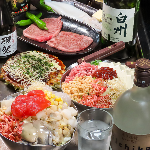 もんじゃ・お好み焼きや鉄板焼きを始めとしたフードメニューが50種類以上と豊富なラインナップ!