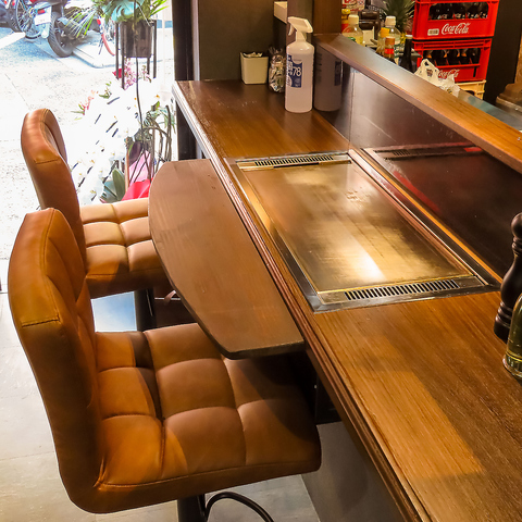 【お一人様でも気兼ねなくくつろげるカウンター席も完備】全2席のカウンター席はお一人様や、カップル・ご夫婦でのデートにも人気のお席です。ゆったりと広めに作られているので、開放感も感じながらお寛ぎいただけます。