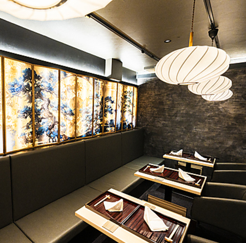 【完全個室では、より優雅でプライベートなひとときをお過ごしいただけます】卓越した職人の技と、旬を見極めて選び抜かれた食材を心置きなくご堪能いただける完全個室。2名、4名、6名の3つの個室をご用意しております。世界を魅了した料理人・的場圭司の味、非日常の贅沢を、リーズナブルにお愉しみ下さい。
