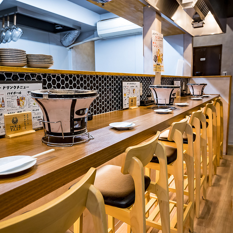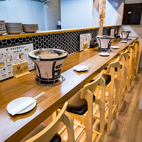 お一人様やデートでのご利用に最適なカウンター席をご用意しております。会社帰りなどにふらっと立ち寄り、こだわりの自家製ダレで味わう鶏焼きを堪能しながら、ゆっくりと一杯楽しむのにぴったりの特等席です。活気ある店内の雰囲気を感じながら、職人が作る料理を間近で眺められるお席で、至福の一時をお過ごし下さい。