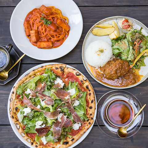 本格ピッツァや季節のパスタ、プレート料理など、満足感たっぷりの一皿が楽しめます。