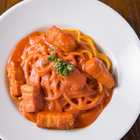 当店で使用しているパスタは、1879年創業の老舗メーカーが、長年の研究と製造会社との共同開発によって生み出した、100%イタリア産・マイプロテインのデュラム小麦を使用しています。ソースとよく絡み、もちもちした食感と豊かな風味を楽しめます。
