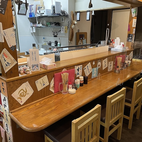全7席のカウンター席を完備しており、お一人様から少人数まで気軽に利用可能。仕事帰りの一杯やサク飲みにも便利です。店内の雰囲気を身近に感じながら、気軽にお楽しみいただけます。