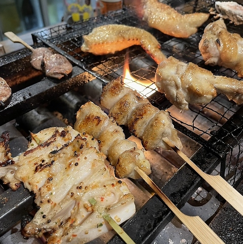 職人が毎日丸鶏を捌き、丁寧に串打ちした自慢のやきとりは、福島のブランド鶏「伊達鶏」を使用。備長炭でじっくり焼き上げることで、外はパリッと、中はジューシーに仕上がります。特製のタレと絶妙な火加減が旨さの秘訣です♪部位による違いをお楽しみください。