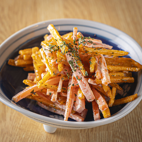 お酒のお供におすすめの1品となっています!にんじんとカラムーチョを合わせて、さらにマヨネーズを加えることでコクと酸味、辛みが絶妙に調和して、いくらでも食べたくなる酒の肴となっています!お酒との相性抜群なのでお好みのお酒と一緒にお召し上がりください☆