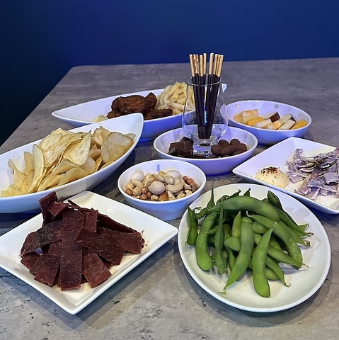 お酒にぴったりな多彩なおつまみもご用意しています。チップスや枝豆など、種類が豊富!さらに、〆には味噌汁をサービスでご提供します。みんなでシェアしながら楽しめるので、仲間との楽しいひとときを過ごせますよ。お酒と一緒に、おいしいおつまみをぜひご堪能ください!もちろんがっつり食べたい方の為のメニューも取り揃えております!