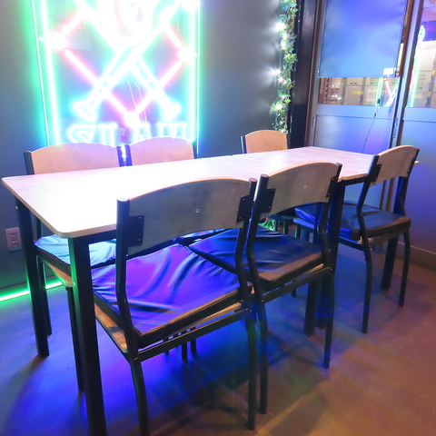 テーブル席は、2名から8名までのグループでもご利用いただけます。テーブルを移動させることで、柔軟にスペースを調整できるので、より快適にお過ごしいただけます。また、シーズンによっては野球観戦を楽しみながらのお食事も可能です。さらに、カラオケは歌い放題で、盛り上がること間違いなし!
