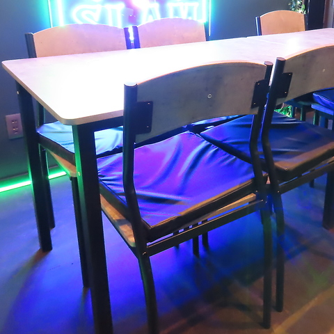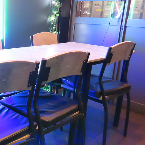 【テーブル席 4×2】4人掛け席が2つあり、友人との楽しいひとときにぴったりです。テーブル等を自由に動かすことで、人数に応じたレイアウトに対応可能。少人数から大人数まで、様々なシーンに合わせて快適にお過ごしいただけます。みんなで集まって、笑い声が響く楽しい時間をお楽しみください!