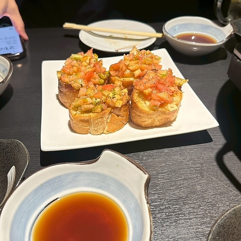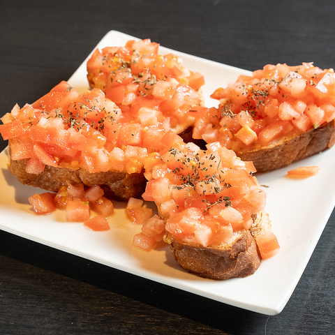 当店のオリジナル料理、トクスケッタは、一口食べればやみつきになる逸品です。香ばしく焼き上げたガーリックトーストに、新鮮なトマトをたっぷりと盛り付け、バジルやオリーブオイルで仕上げました。トーストのパリッとした食感と、トマトのジューシーさが絶妙に絡み合い、風味豊かな味わいを楽しめます。