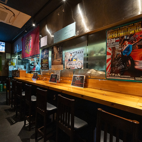 【カウンター席】当店のカウンター席は、お一人様でも気軽にご来店いただける快適な空間です。女性お一人でもご来店も歓迎!アットホームな雰囲気の中で、みんなでシェアしながら美味しい料理を味わい、楽しいひとときを過ごせます。お一人様から大人数まで、どんなシーンでもお待ちしております。お気軽にご来店ください。