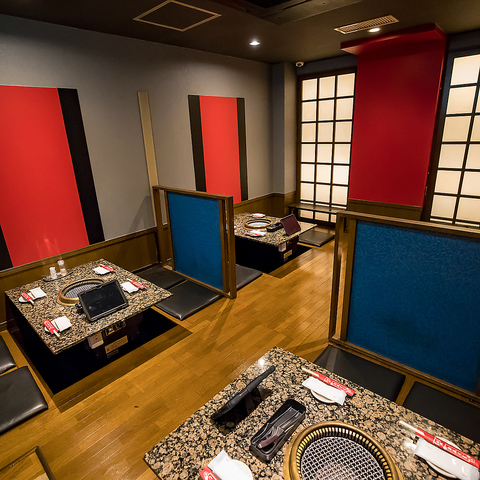 【ゆったりと脚を伸ばして寛げる掘り炬燵席】仕事帰りの食事やご宴会にもおすすめ♪落ち着いた和の空間で、厳選された神戸ビーフをじっくりとご堪能いただけます◎上質なお肉と居心地の良い空間で、贅沢なひとときをお楽しみください。