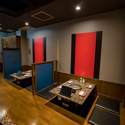 地下と2階の掘り炬燵席は、足を伸ばしてゆったり寛げる空間◎ご家族連れの方にも好評です〇