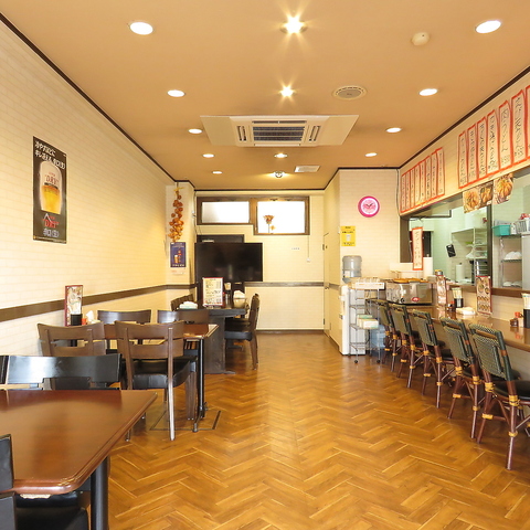 白基調で清潔感があり、女性も安心して過ごせる明るい店内。お席はカウンター席にテーブル席がございます。