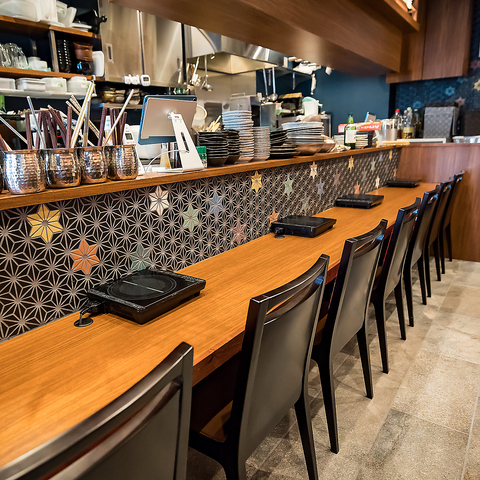 お一人様でも気軽に楽しめるカウンター席を完備。落ち着いた雰囲気で食事を♪