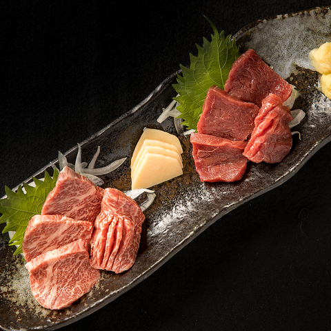 旨味と甘みのバランスが絶妙な最高級馬刺しは、口の中でとろけるような食感!特別な一皿に感動を呼ぶ逸品♪