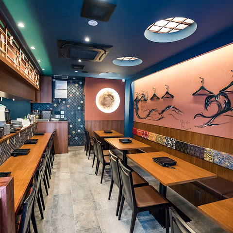 店内にはカウンター席とテーブル席があり、落ち着いた照明が特別な時間を演出します。デートやご友人との少人数のお食事はもちろん、最大23名様までの貸切にも対応しており、宴会や接待にも最適です。当店は英語・中国語・韓国語のメニューもご用意しており、観光で大阪へお越しのお客様にも安心してご利用いただけます。