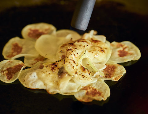 ヒレ肉でガーリックチーズを包み、鉄板の上で揚げた一品。外はパリッと中はしっとりです。