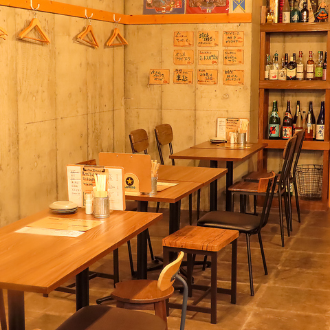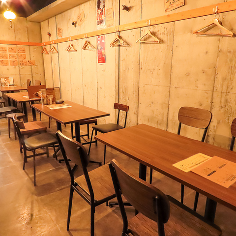 コンクリート打ちっぱなしの壁と温かい照明がお洒落な店内は、普段使いからグループ利用まで幅広くご利用◎
