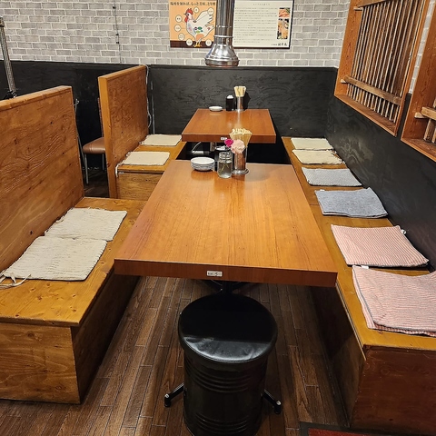 店内は4名テーブル2卓、6名テーブル2卓、8名テーブル1卓と多彩な席をご用意しており、席の結合も可能なため大型宴会や会社の集まりにも対応可能です♪広々とした空間でみんなで集まるひとときを楽しめる雰囲気◎設備もしっかりしているので安心してご利用いただけます!