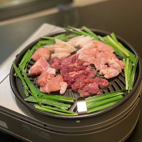 お勧めの焼き方は焼き網の中心から外周にかけて皮、もも、ぼんじりなど脂が出る部位を置いていただき流れ出てくる新鮮な鶏油(ちーゆ)で、肝、砂肝、背肝など他の部位を焼き、予め網のふちに配置しておいたニラをパリッと仕上げる焼き方です。とり焼きは盛り合わせも可能で、人数やシーンに合わせてご注文ください◎