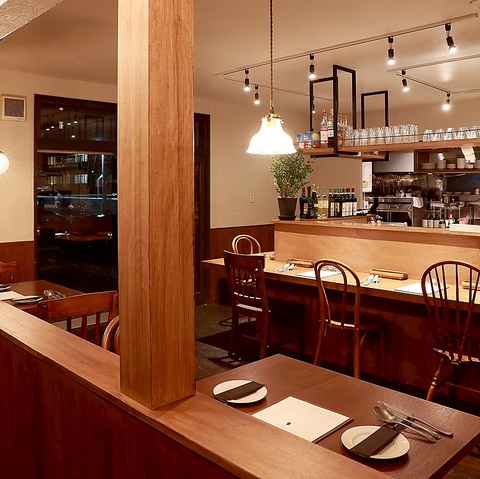 シンプルながらも落ち着いた雰囲気のテーブル席は、ディナーデートや女子会に最適◎広々とした空間で、絶品のパスタやワインをゆっくりと味わいながら、周りを気にせずお食事と会話を楽しんでいただけます。ランチタイムには明るい自然光が差し込み、開放的な空間に♪大切な方との時間をゆったりとお過ごしください。