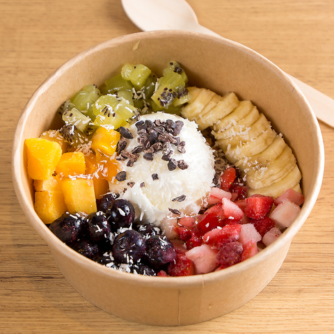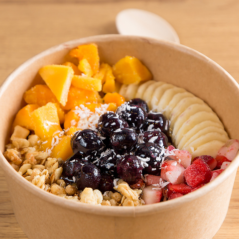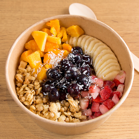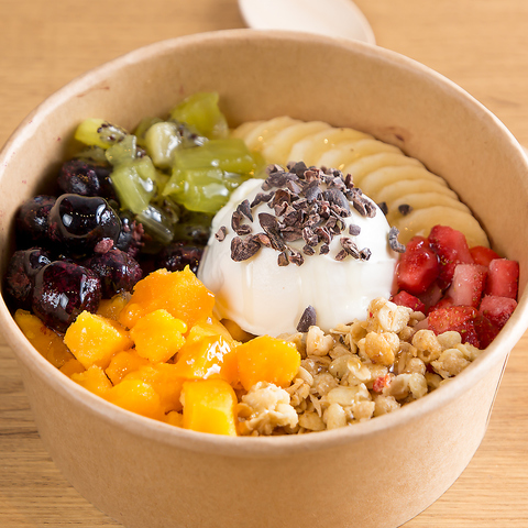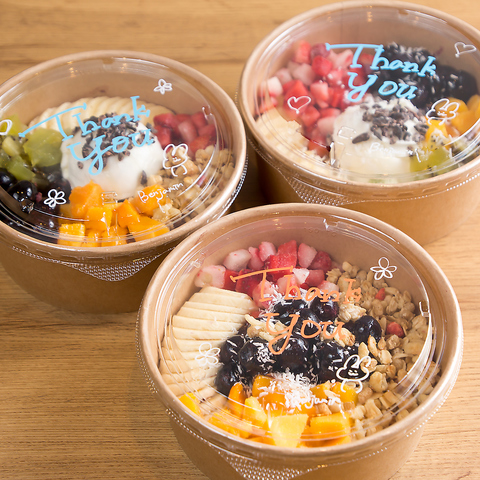 ナッツやフルーツ、チョコレートなどたくさんのトッピングをご用意。あなただけのアサイーボウルを!
