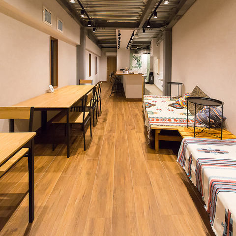 女子会におすすめのテーブル席が魅力です。友人たちと集まれば、自然と笑顔が溢れ、会話が弾むこと間違いなし。シンプルでスタイリッシュな内装は、落ち着いた雰囲気を醸し出し、リラックスして過ごせる空間を提供します◎夜営業をしているところもうれしいポイント♪