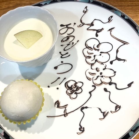 記念日にはデザートプレートをご用意。チョコペンアートを極めた料理長による演出で特別な時間を。