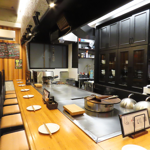 お一人様でも気軽に立ち寄れるカウンター席を8席ご用意しています!目の前で調理が見えるライブ感も楽しめます◎もちろんデートやご友人とのお食事、サシ飲みにもぴったりです♪ゆる~い雰囲気の中で、自慢の鉄板焼きやお酒をごゆっくりとお楽しみください!